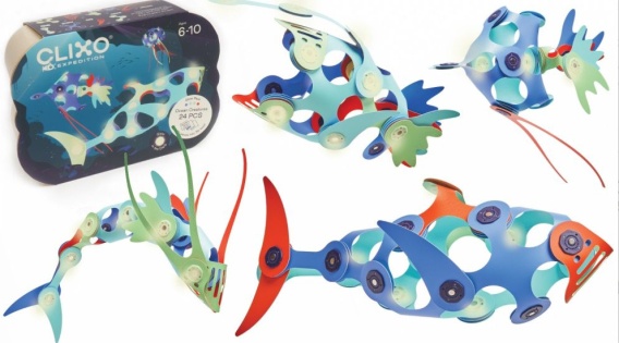 Przedstawiamy nowy zestaw magnetycznych klocków CLIXO Expedition, tym razem z motywem podwodnej ekspedycji. W zestawie znajdują się 24 elementy m.in.: gwiazda trzy i czteroramienna, elementy z dwoma lub trzema magnesami czy nawet unikatowe elementy imitujące ogony morskich stworzeń. Dodatkowo zestaw posiada fluorescencyjne elementy, które w ciemności dadzą niesamowity efekt.