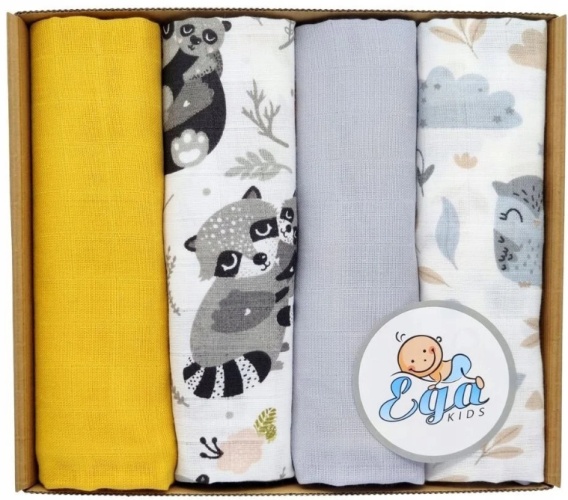 Komplet czterech, przewiewnych pieluszek muślinowych, zapakowanych w kartonik z przezroczystym okienkiem idealnie sprawdzi się jako prezent np. dla przyszłych rodziców. Muślin charakteryzuje się lekkością i wyjątkową miękkością, której nabiera z każdym praniem, a więc sprawdza się już od pierwszych dni życia. Pieluszki z muślinu są wielofunkcyjne, można ich używać jako otulacza , lekkiego kocyka, podkładu do przewijania, prześcieradła, czy też podręcznego ręcznika.