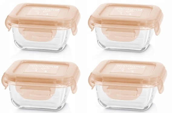 Miniland Pojemniki szklane kwadratowe ECO-friendly 4x160ml - Królik