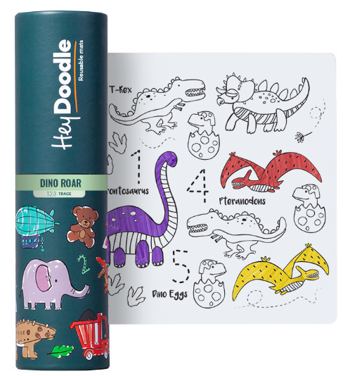 Australijska firma HeyDoodle zaprojektowała opakowania tak, aby było ładne i praktyczne. Maty idealnie sprawdzą się na prezent, a potem w zabawie w domu, w podróży, w samochodzie, u babci i cioci, a po zabawie, można ponownie schować flamastry i matę do estetycznego opakowania.