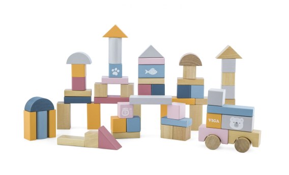 Drewniane klocki od firmy Viga to jeden z najwspanialszych zabawek, która będzie służyła długo i zapewni Twojemu dziecku wiele lat ciekawej i kreatywnej zabawy. Bawiąc się naszymi klockami maluszek kształtuje precyzję ruchów rączek, oraz poprawia koordynację wzrokowo-ruchową. To walory, których nie zastąpi żadna inna zabawka. Zestaw zawiera 60 kolorowych klocków. Różnorodność kształtów pozwala na budowanie niepowtarzalnych budowli, miast i obiektów. Klocki opakowane są w plastikowe wiaderko z rączką co ułatwi przenoszenie ich w dowolne miejsce. Do zestawu dołączona jest również książeczka, która zainspiruje dziecko do kreatywnej zabawy.