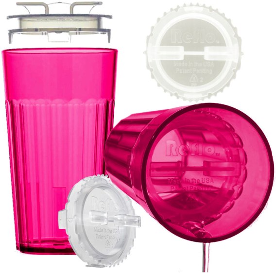 Kubek Reflo jest idealny do nauki picia "ze szklanki" poprzez zastosowanie innowacyjnej, opatentowanej wkładki. Sprawia ona, że płyn wylewa się bardzo cienką stróżką.