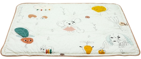 Mięciutka mata z kolekcji Garden of Adventure oferuje miejsce do motorycznych i sensorycznych doświadczeń dziecka leżącego na pleckach, brzuszku lub podczas turlania. Stymulowanie różnych zmysłów pozwala na ćwiczenie koordynacji, równowagi i postawy oraz uczy niemowlę kontroli ruchów swojego ciała.