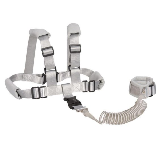 • Elastyczna opaska łączy dziecko z uprzężą, a rodzica z opaską zabezpieczającą