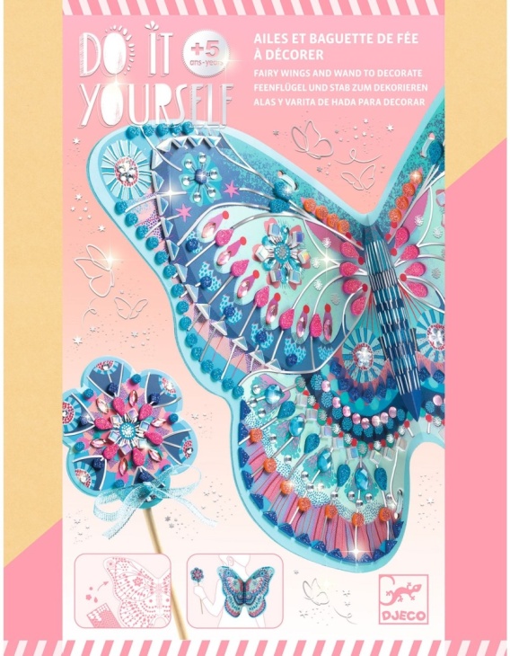 Bajeczny zestaw Zrób to sam do samodzielnego zrobienia imponujących skrzydeł wróżki wraz z różdżką. Skrzydła można założyć na plecy, co może stanowić element stroju na balu przebierańców!